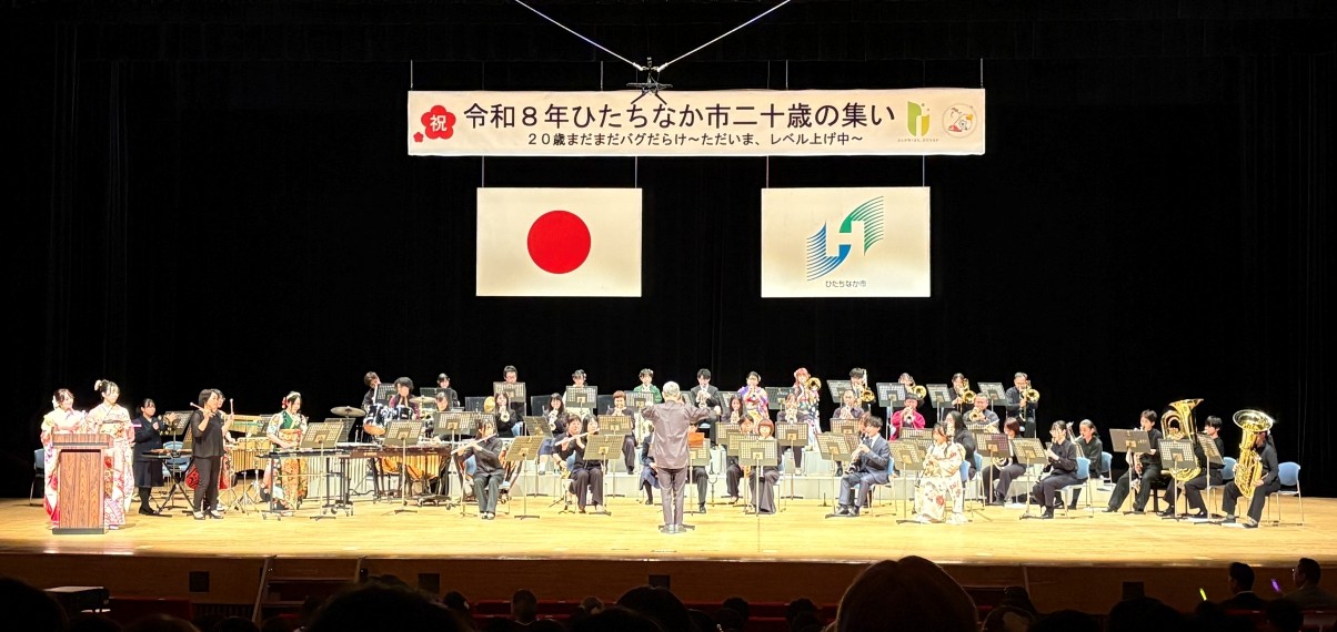 『ひたちなか市二十歳の集い』式典のアトラクションとして、二十歳の皆さんと一緒に演奏します。
